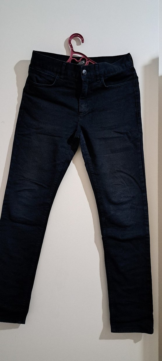 Erkek çocuklar için siyah denim pantolon, düzenli kesim ve sade tasarımla rahat ve şık bir görünüm sunar. Günlük kullanıma uygundur. çok az bi solma var onun disinda temiz küçük geldigi için satiyorum