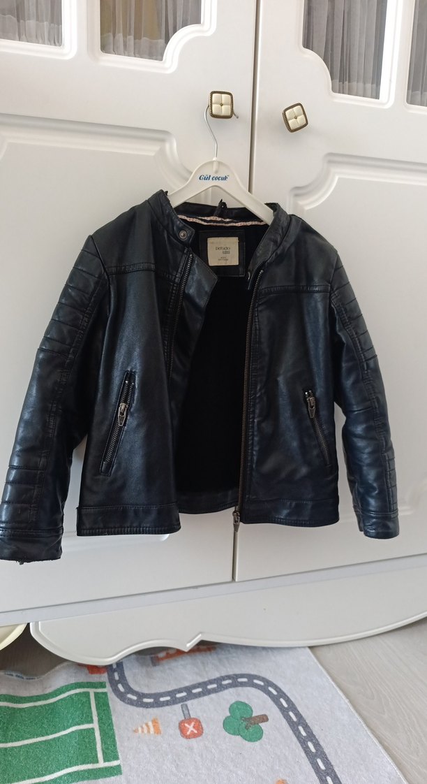 Erkek çocuklar için siyah yumuşak deri ceket sadece yaka kısmında biraz soyulmalar var