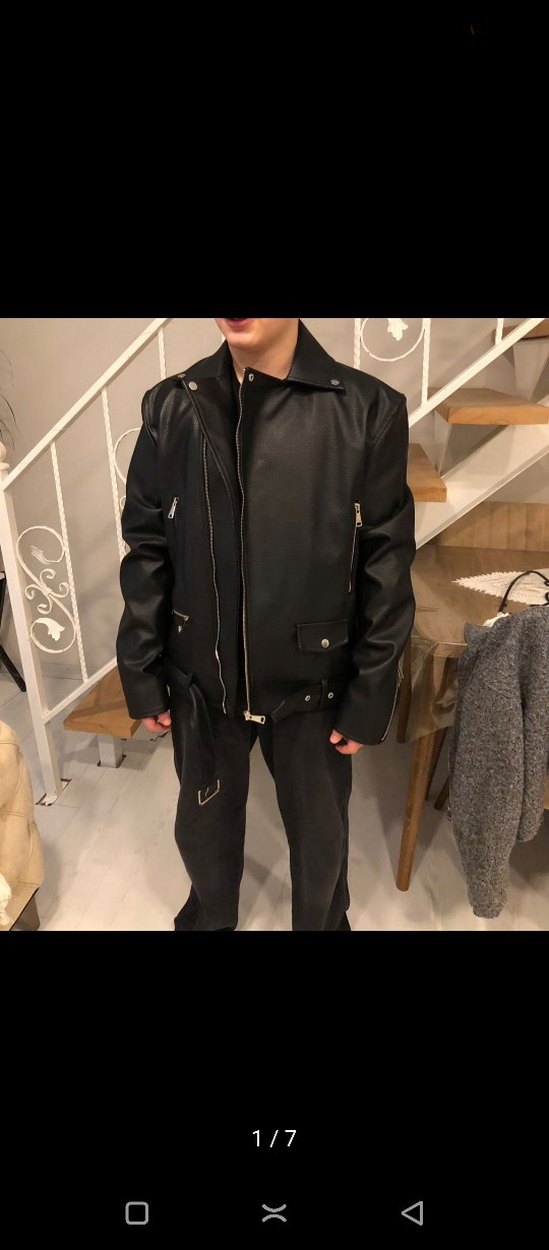 Erkek için siyah deri ceket, notlu yaka ve regular fit ile sokak stilinde şık bir görünüm sunar.