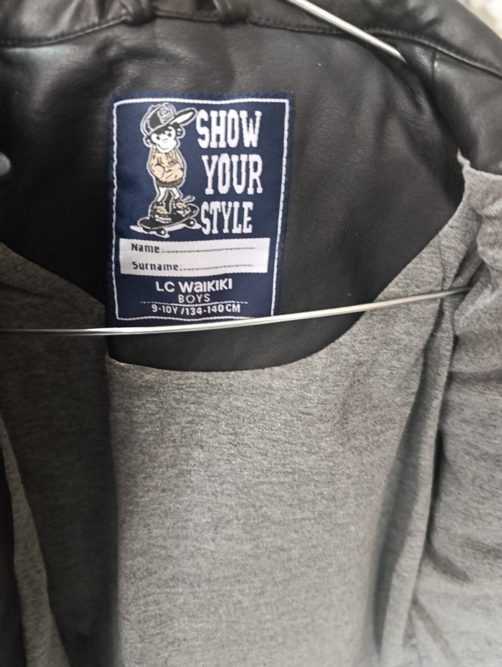 Erkek çocuk siyah deri ceket LC Waikiki Rock Punk Rozeti