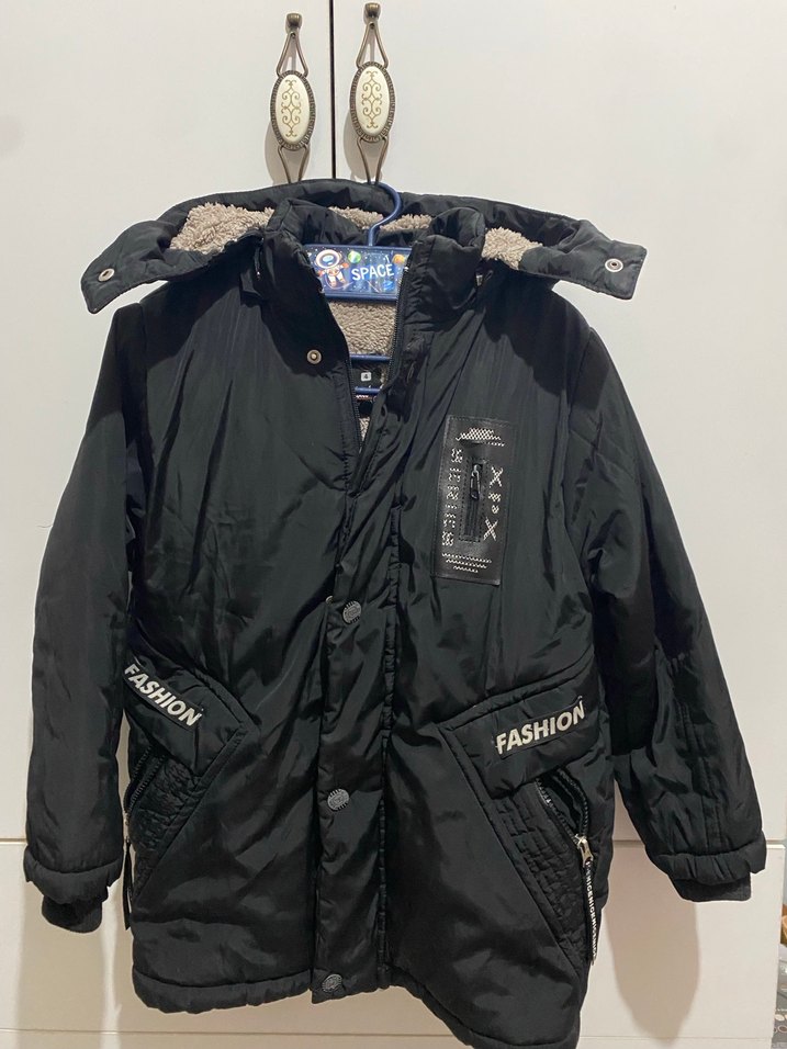 Erkek çocuklar için siyah düğmeli street wear mont, regular fit, baskılı detaylı ve yumuşak fleece astarlı. 'FASHION' yazılı cepleri bulunan trend şık mont.