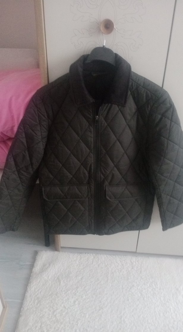 s beden koyu yeşil sıfır giyinimemis için renkte, fermuarlı ve dikdörtgen desenli ceket. Regular fit ve notched lapel yaka ile sokak stili için uygundur. Yumuşak kumaşı rahatlık sağlar. aldık sırtı olmadı l beden almış iadeile ugrasmadik