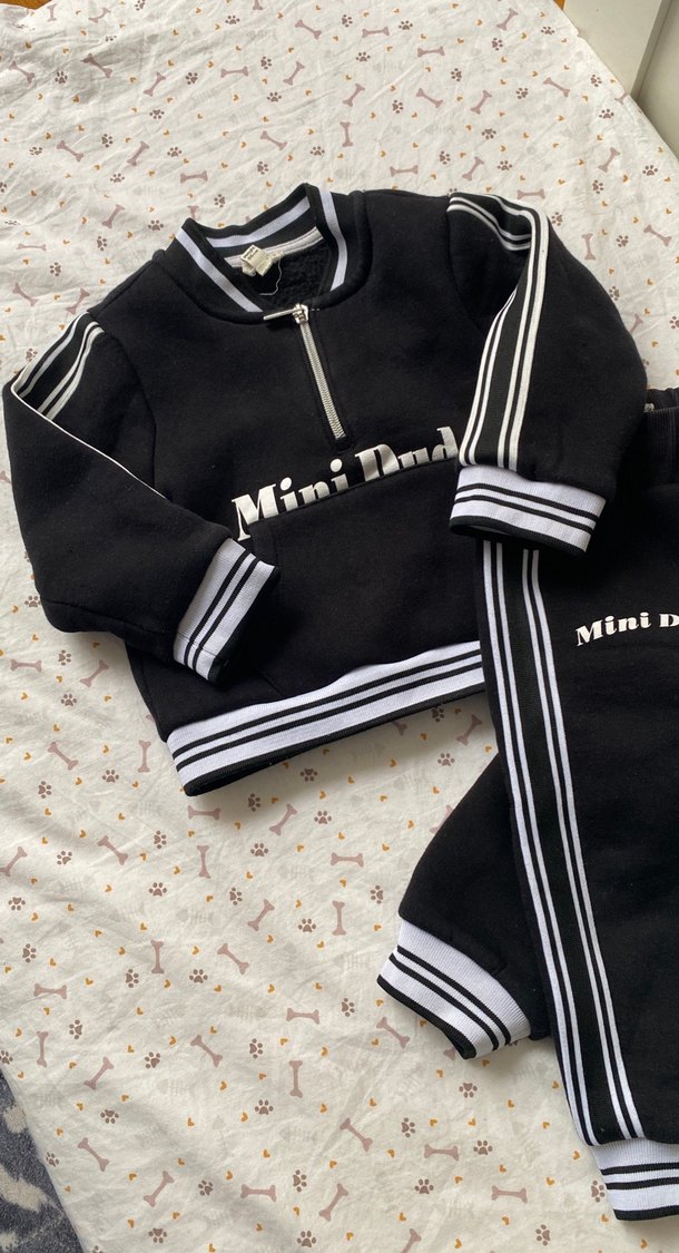 Siyah renkli, fermuarlı, baskılı ve fit kesim erkek çocuk eşofman takımı. Yumuşak ve sıcak kumaştan, bisiklet yaka ve çizgili detaylara sahip. Unisex model İçi polar yumoş 12-18 ay Temiz ürün.