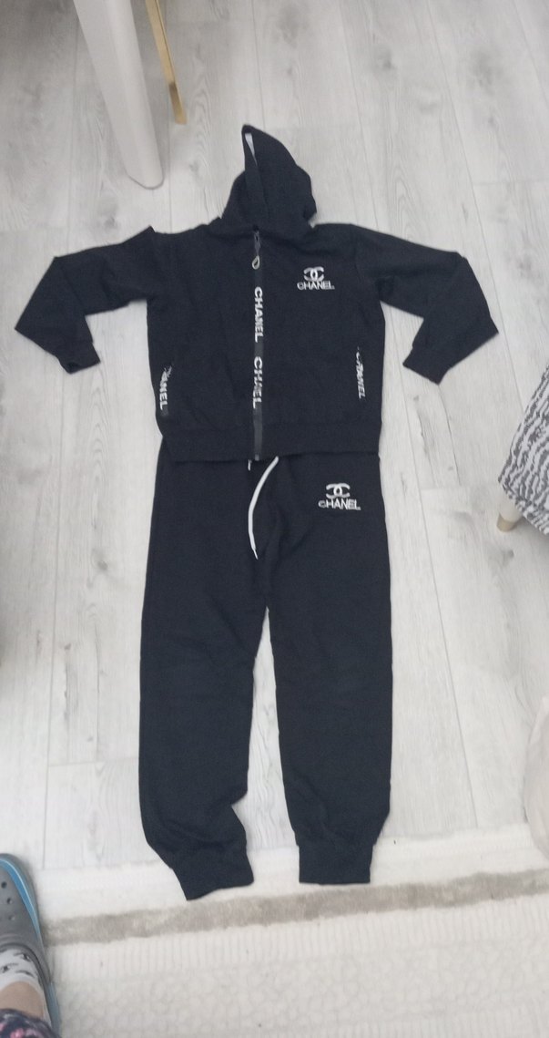 Erkek çocuklar için siyah, fermuarlı kapüşonlu ve eşofman altından oluşan dar kesim sokak stili takımdır. Yumuşak kumaştan üretilmiş, bisiklet yaka ve sade marka detayları içerir.
