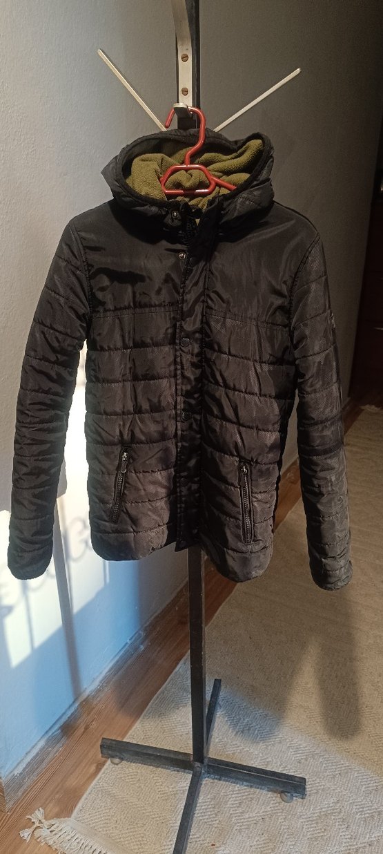 Erkek çocuklar için siyah, fermuarlı cepli, notched lapel yakalı ve yumuşak, sıcak dokulu kumaştan yapılmış, sokak stili uyumlu, dar kesim kaban.