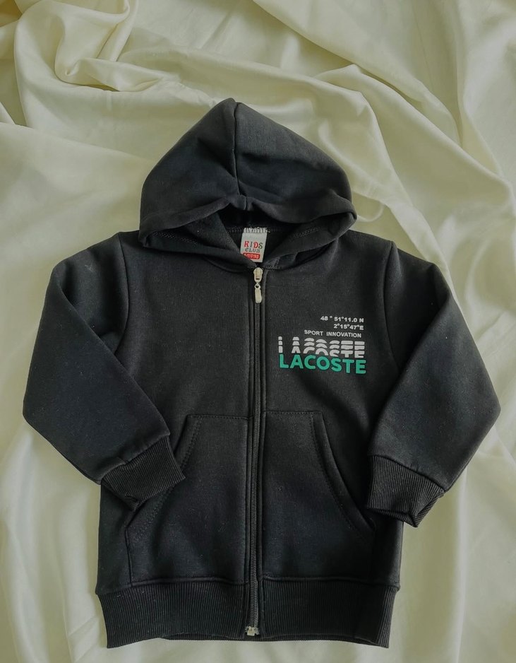 Erkek Çocuk Siyah Fermuarlı Kapüşonlu ceket