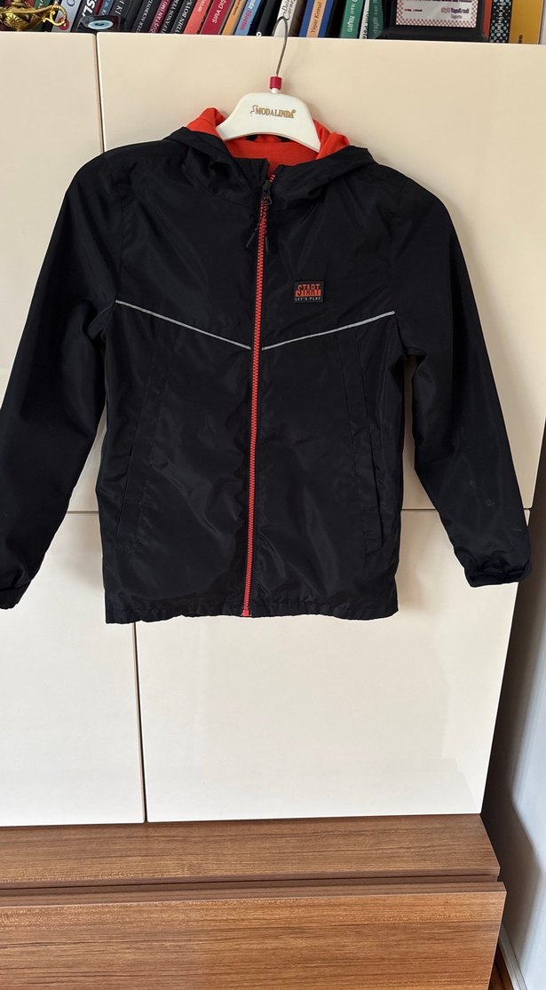 Erkek Çocuk Siyah Fermuarlı Kapüşonlu ince mont