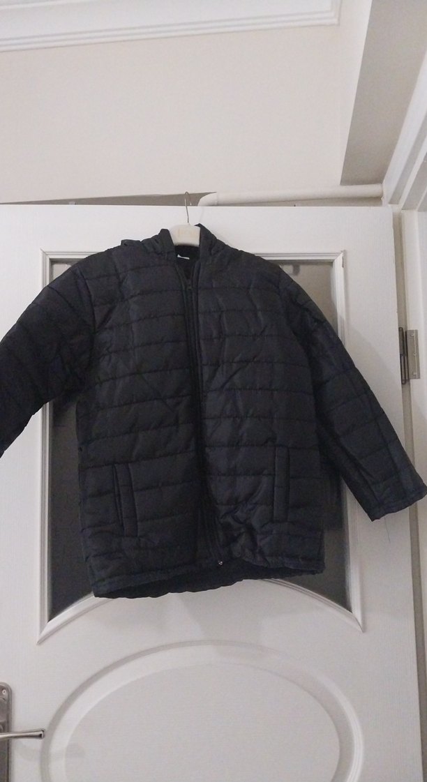 Fermuarlı, kesimli erkek çocuk montu, siyah renkli ve düz desensizdir. Yumuşak ve sıcak kumaştan yapılmıştır, sokak stili için uygundur.