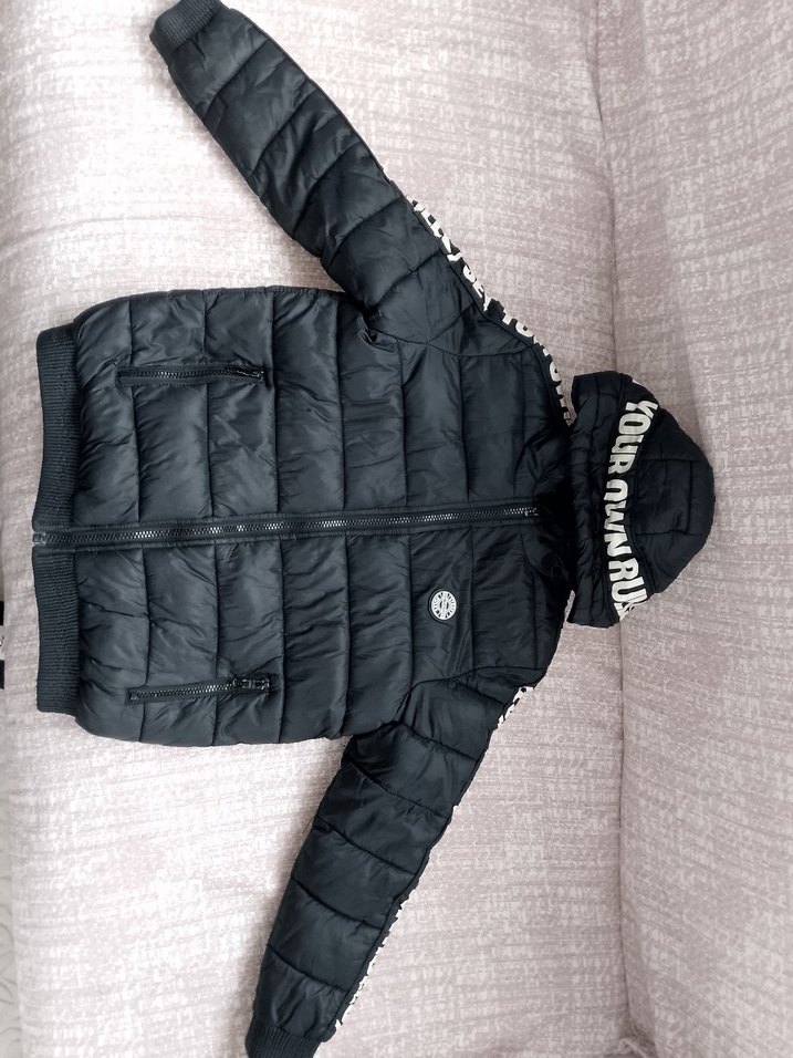 Erkek çocuklar için siyah, fermuarlı, notched lapel yakalı, sokak stili uyumlu ve rahat kumaştan mont. ürün çok az kullanılmış temiz ve bakımlı
