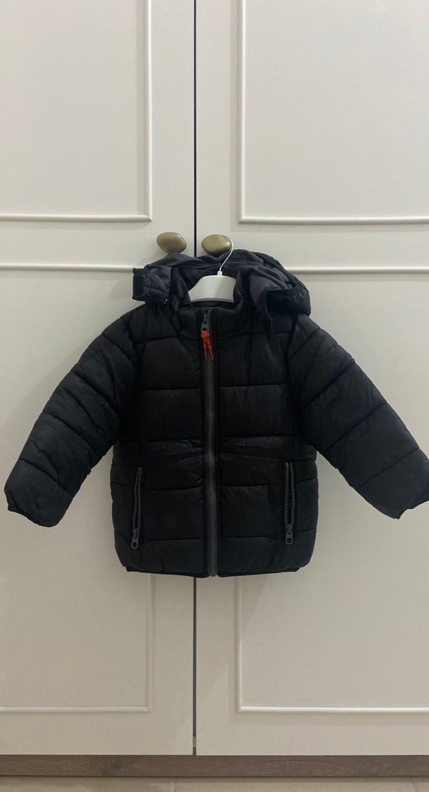 Erkek çocuklar için siyah, fermuarlı, çıtmalı yaka detaylı, sokak stili uyumlu, yumuşak ve sıcak dokulu mont. Kusurlarını belirttim çok belli değil çok güzel bir mont alacak olana şimdiden hayırlı olsun 2 3 yaş