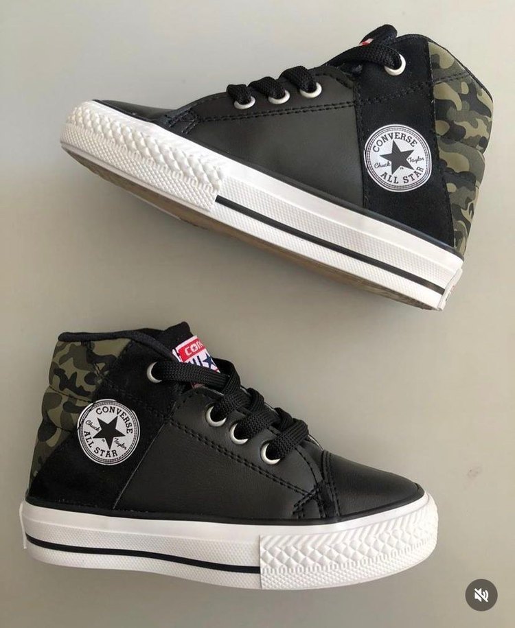 Siyah kamuflaj desenli Converse erkek çocuk spor ayakkabısı, kaymaz taban ve rock punk tarzında.26272829 numaralar mevcut