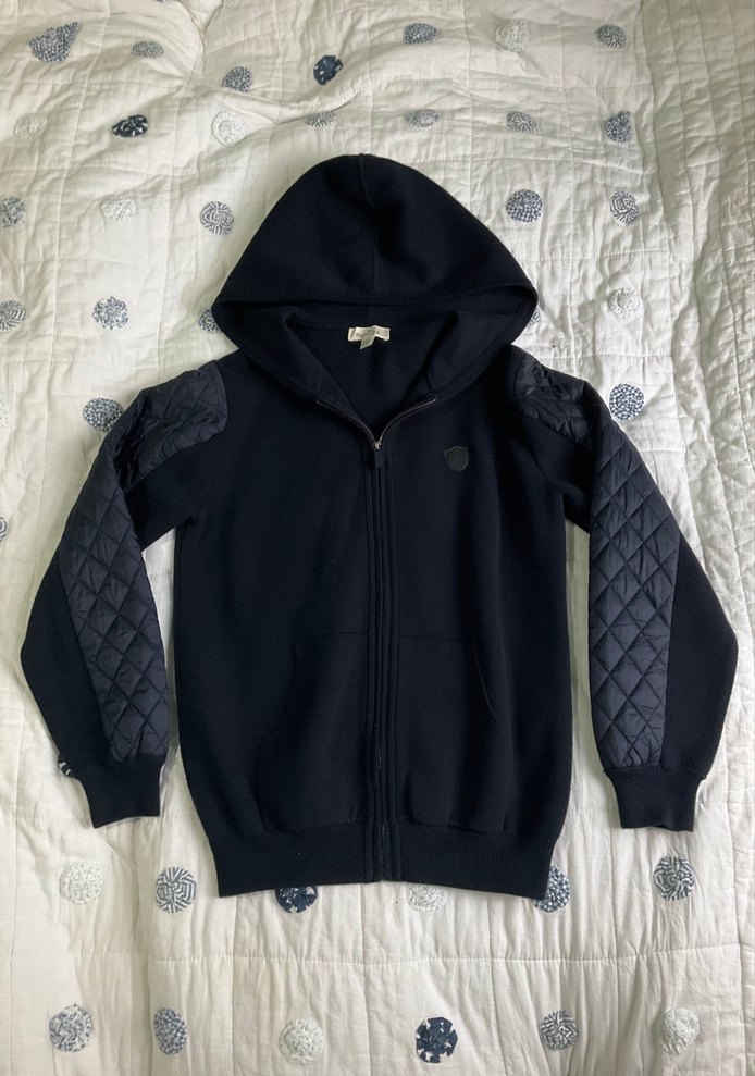 Erkek çocuklar için siyah, kapüşonlu ve fermuarlı, vücuda oturan bir ceket. Kollarında desenli kapitone detaylar bulunur. Yumuşak ve sıcak kumaştan, günlük sokak tarzına uygun.