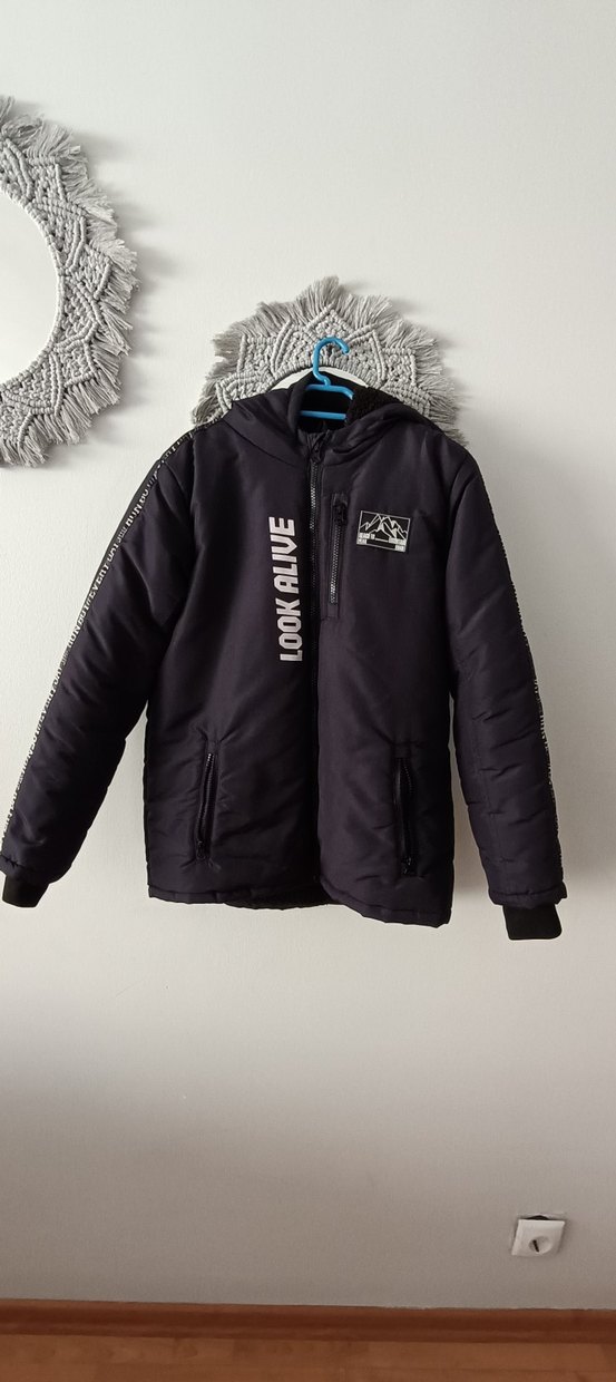 lacivert renkli, yüksek yakalı ve bol kesim erkek çocuk ceketi. Fermuarlı ve baskılı detaylarla trend sokak modası stilinde, yumuşak ve sıcak kumaştan yapılmıştır.