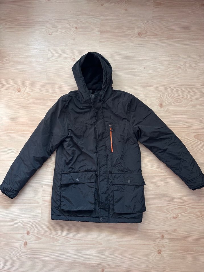 Erkek çocuk siyah kapüşonlu ceket, çıtçıtlı cep ve fermuarlı detaylara sahip.defo vs hiçbir şey yoktur. 12-13 yaş 152-158 cm