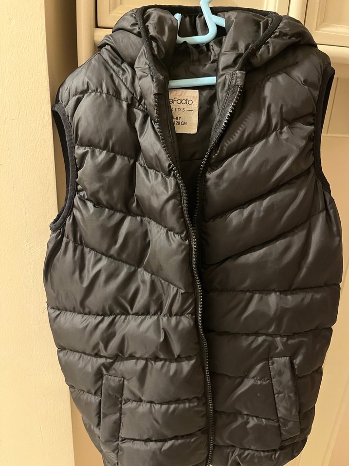 Erkek Çocuk siyah Kapüşonlu Fermuarlı Yelek