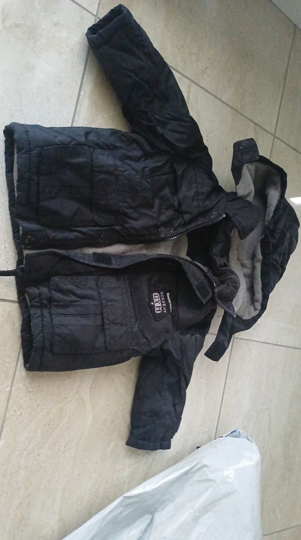Erkek çocuklar için siyah, kemerli ve kesimli, yumuşak iç yüzeyli kapüşonlu mont. Sokak stiliyle uyumlu.