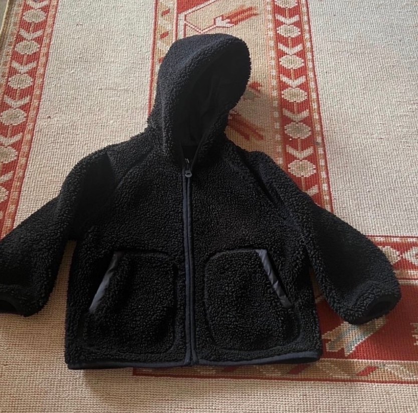Bu siyah, kapüşonlu erkek çocuk ceketi, yumuşak kürk detaylarıyla sade bir sokak stili sunar, sıcak ve rahat bir kullanım sağlar.