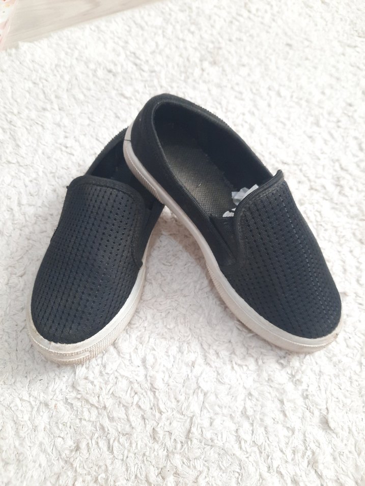 Siyah renkli, delikli tasarıma sahip erkek çocuk loafer ayakkabı. Cırt cırtlı ve rahat kauçuk tabanlıdır.