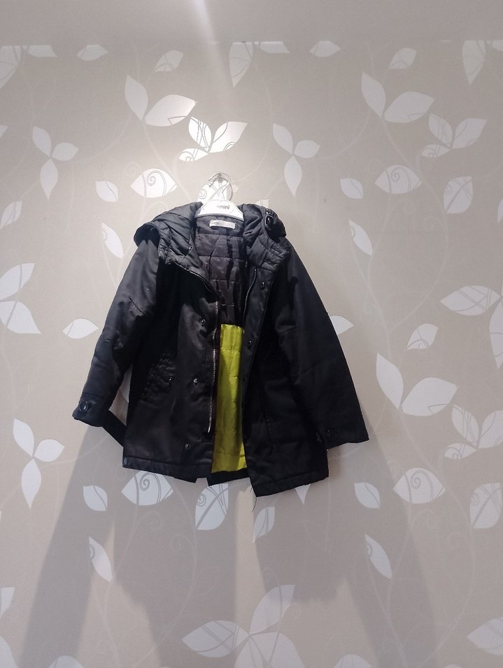 Erkek Çocuk Siyah Kemerli Kapüşonlu Kaban