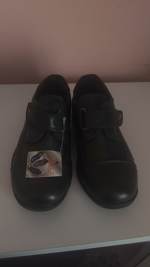 Erkek çocuklar için siyah renkte, kauçuk malzemeden yapılmış, kemerli ve goth tarzında özel ayakkabılar.