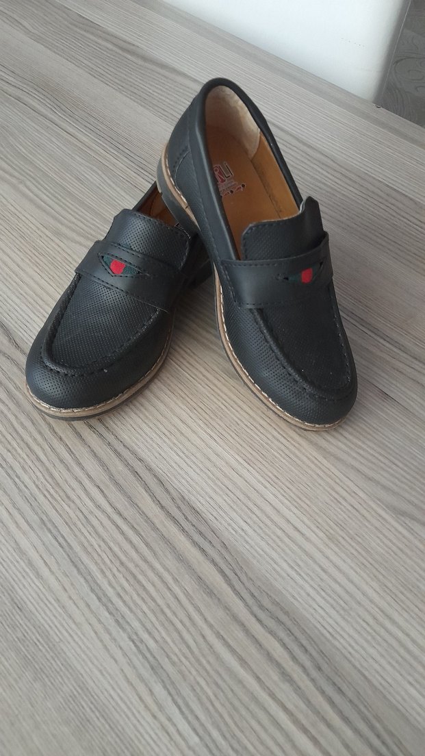 Siyah renkli, tokalı ve klasik tarzda, kauçuk malzemeden yapılmış erkek çocuk özel gün ayakkabısı. Trendy ve rahat bir seçim.