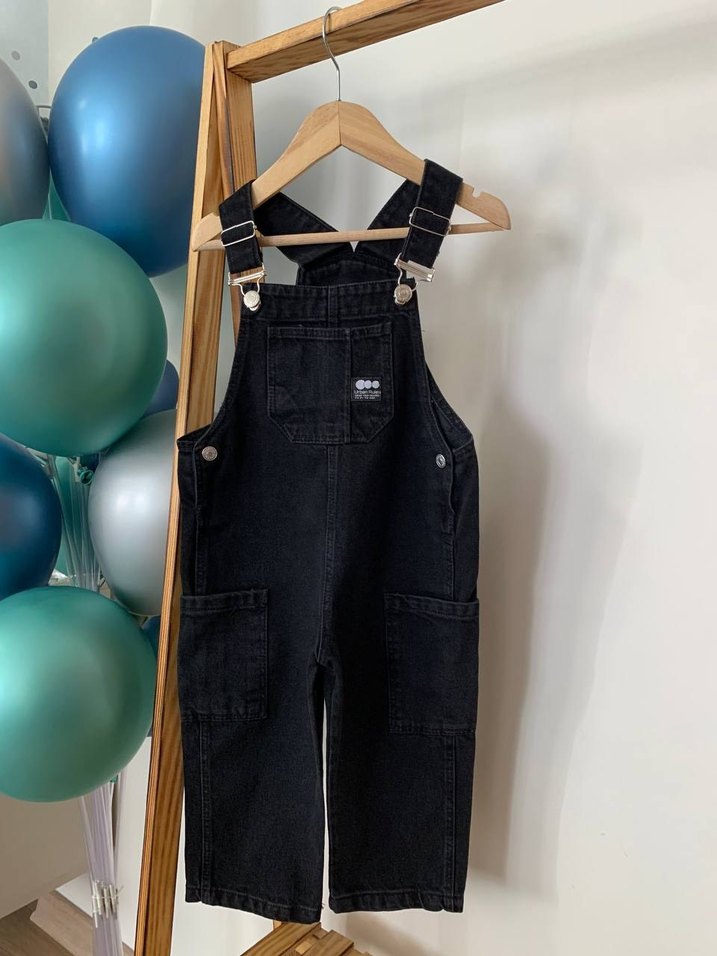 Erkek Çocuk Siyah Kot Askılı Bol Tulum