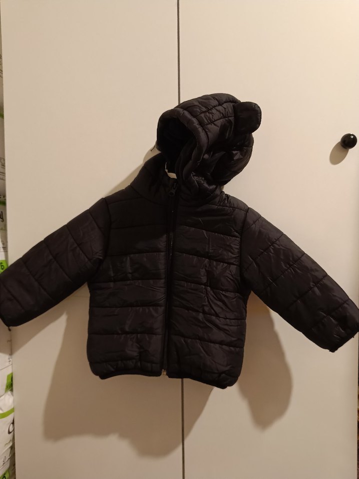 Erkek çocuklar için siyah, kapüşonlu ve kürk detaylı, notched lapel yakalı, düz ve sokak tarzı uyumlu, yumuşak ve sıcak kumaştan mont. 1/2 yaş uyumlu