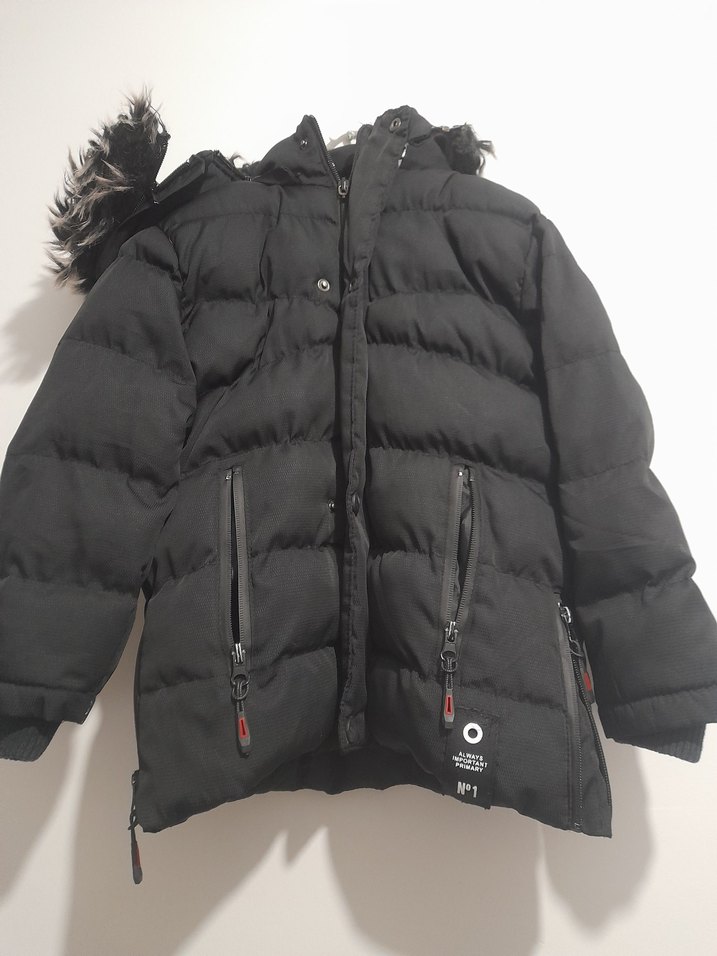 Siyah, kürklü kapüşonlu, fermuarlı cepli, fitted kesim erkek çocuk montu. Yumuşak ve sıcak kumaştan, streetwear tarzında bir dış giyim ürünü. 3-4 yaş