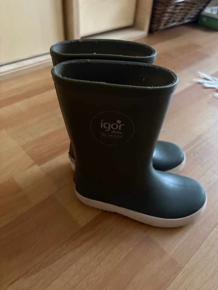 Siyah lastik erkek çocuk çizmesi, velcro kapamalı, 'igor' logosu ile sade tasarım. Rahat ve kullanışlıdır.