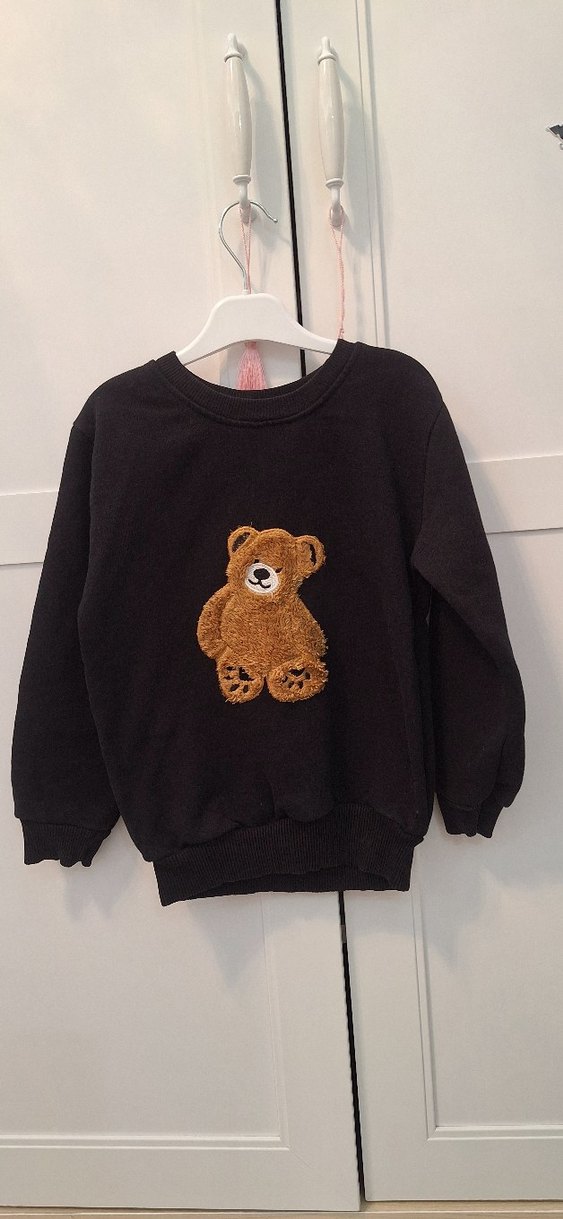 erkek çocuk siyah triko kazak, yuvarlak yaka ve uzun kolludur. Rahat kesimi ve nakışlı ayıcık deseniyle günlük kullanıma uygundur. az giyildi temiz