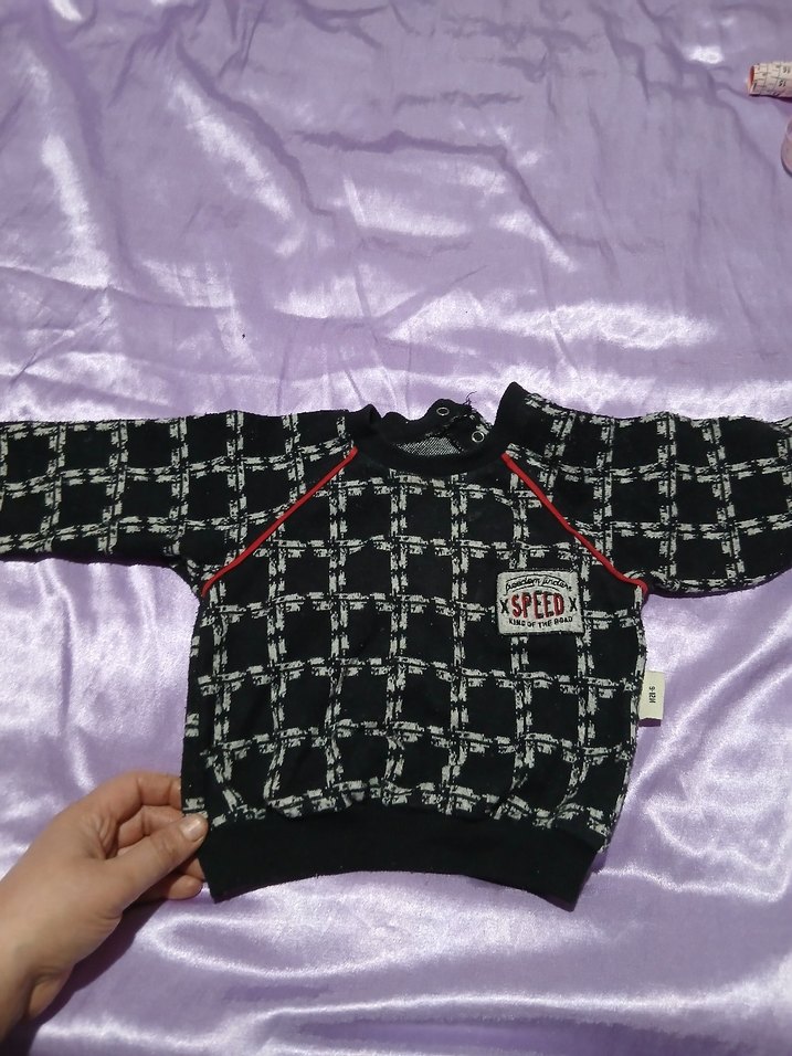 Fitted kesim, uzun kollu, örme kumaştan erkek çocuk sweatshirtü. Siyah zemin üzerine baskılı desen ve kırmızı şerit detaylar içerir, rock punk sokak tarzını yansıtır.