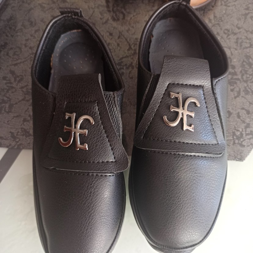 siyah parlak deri, baskılı ve tokalı ayakkabılar, trend sokak stili için uygundur.