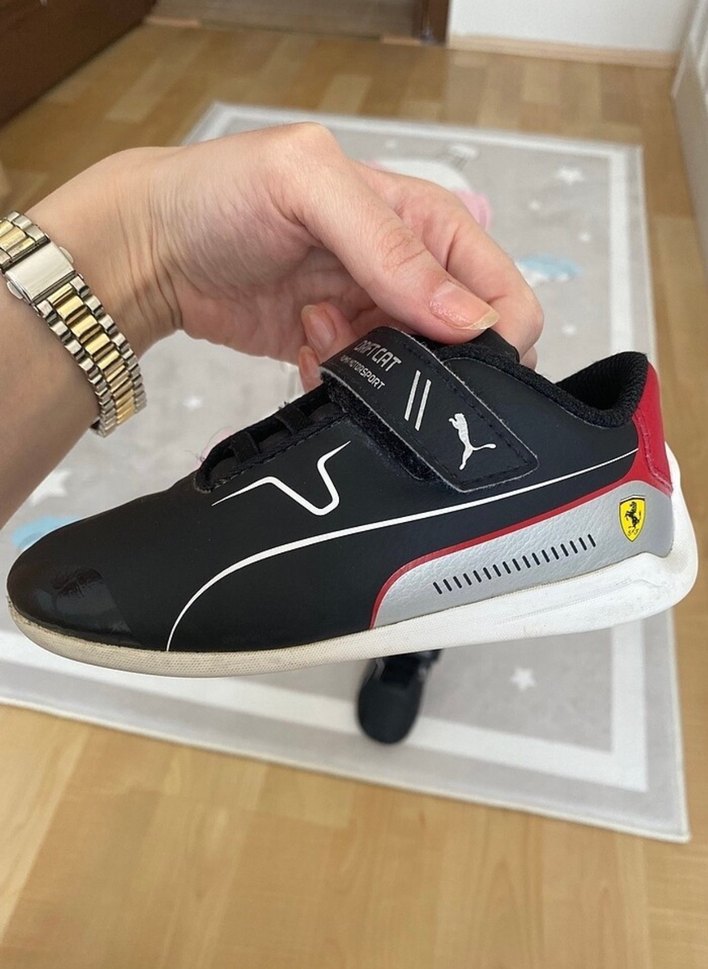 Orijinal Puma marka.Siyah renkli, baskılı detaylara sahip erkek çocuk spor ayakkabısı, velcro bantlı ve kauçuk tabanlı, sokak modasına uygun. Çok az giyildi. Kusuru yok.