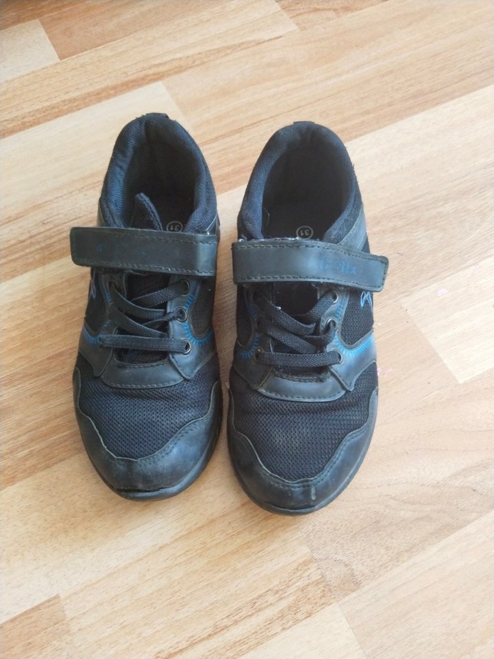 Siyah renkli, cırt cırtlı ve kauçuk tabanlı erkek çocuk spor ayakkabısı. Düz ve sokak tarzına uygun, rahat ve kullanışlı. 31 numara