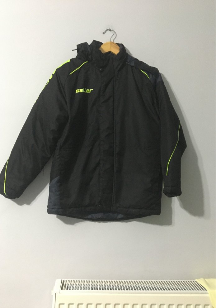Erkek çocuklar için, yüksek yakalı, cırt cırtlı, siyah ve neon detaylı, yumuşak ve sıcak dokulu fitted mont. Trendy casual tarz için uygundur.