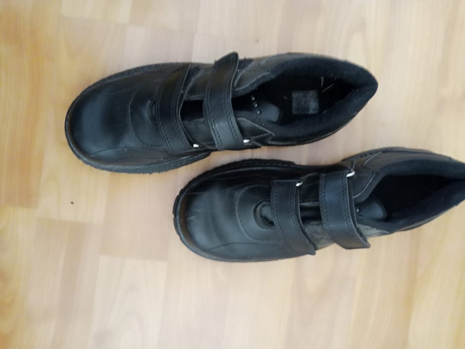 Siyah renk, tokalı ve lastik malzemeden yapılmış erkek çocuk biker tarzı ayakkabılar. Düz ve desensiz sade tasarıma sahip.