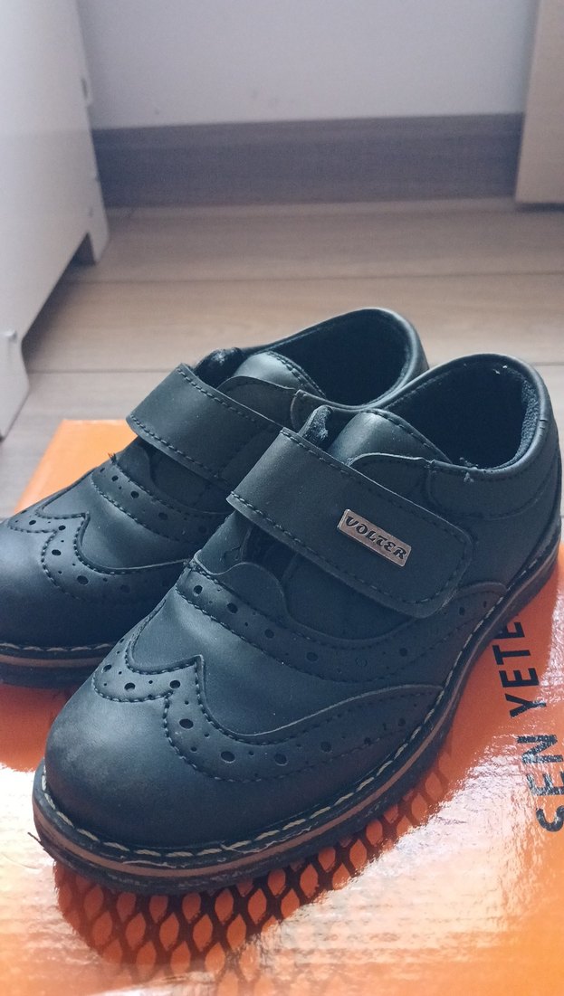 Siyah renkte, tokalı kayışa sahip, kauçuk malzemeden yapılmış erkek çocuk özel ayakkabısı. Kayışta VOLTER marka detayı bulunur. ozel gun ayakkabısı