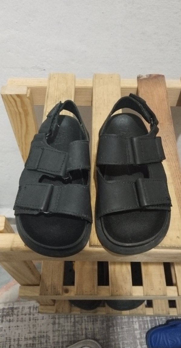 Siyah renkli, tokalı, kauçuk malzemeden yapılmış erkek çocuk terlikleri. Düz ve desensiz sade tasarıma sahiptir.
