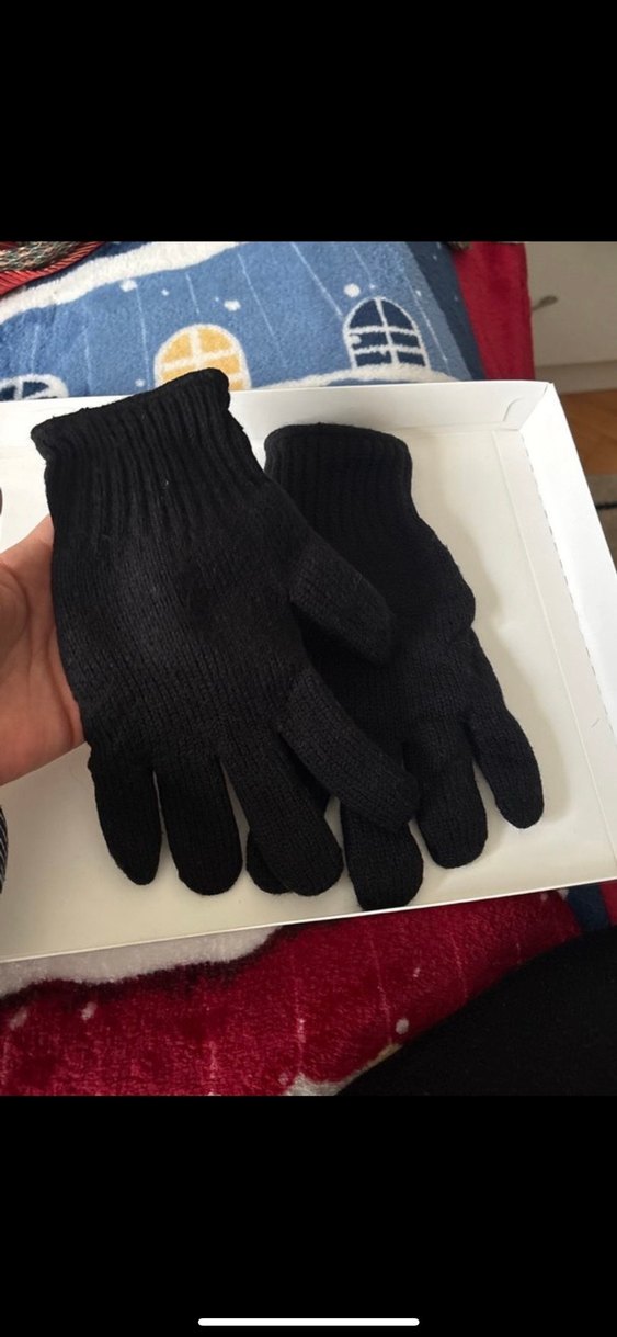 Erkek çocuklar için siyah, triko örgü ve yumuşak sıcak tutan kumaştan üretilmiş, sade sokak stili eldivenler.