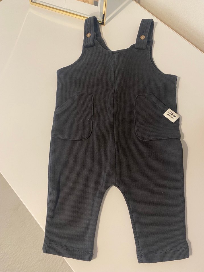 Erkek çocuklar için siyah, triko dokulu, kolsuz ve vücuda oturan tulum. Ön cepleri ve sade tasarımı vardır.