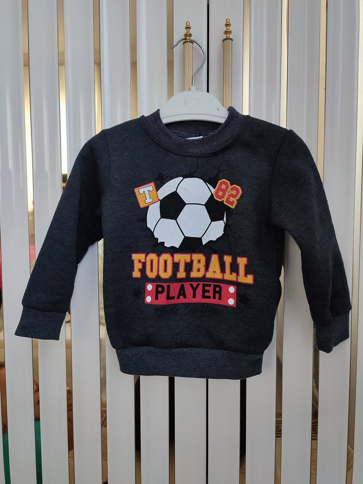 Siyah renkli, uzun kollu ve bisiklet yaka erkek çocuk sweatshirtü. Yumuşak ve örme dokulu kumaştan üretilmiş, futbol temalı baskısı bulunur. ⚽