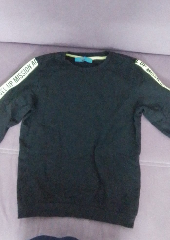 Erkek çocuk için siyah uzun kollu, yuvarlak yakalı, bol kesim sweatshirt. Kollarında 'UP MISSIONAG' yazılı örgü detaylar bulunur. Yumuşak ve sıcak kumaştan üretilmiştir.