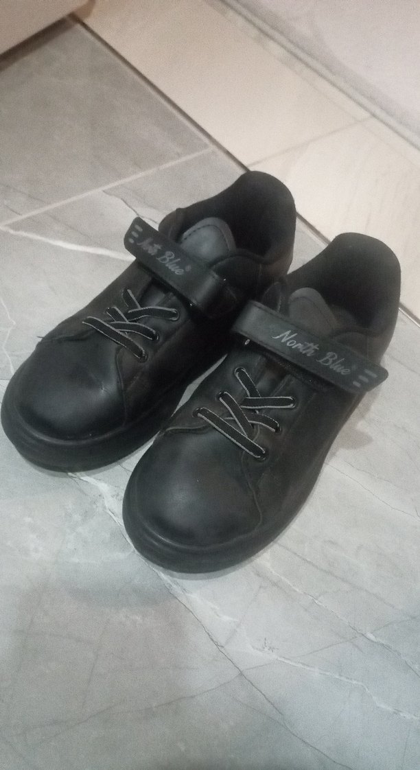 Siyah renkli, velcro bantlı ve kauçuk tabanlı erkek çocuk spor ayakkabısı, sade ve rahat tarzda. ürün bir kere giyilmiştir kusuru yoktur.