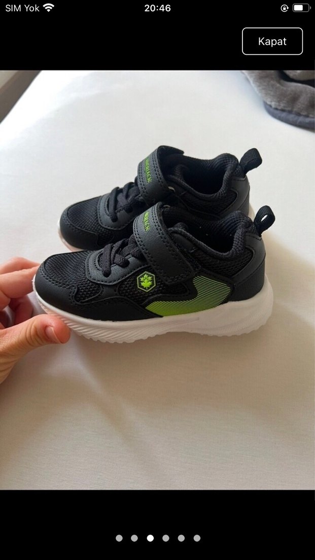 Erkek çocuklar için siyah ve yeşil renkli, cırt cırtlı, desenli sneaker. Rahat kauçuk tabanlı, sokak tarzına uygun. Fazla kullanılmadı çok temiz