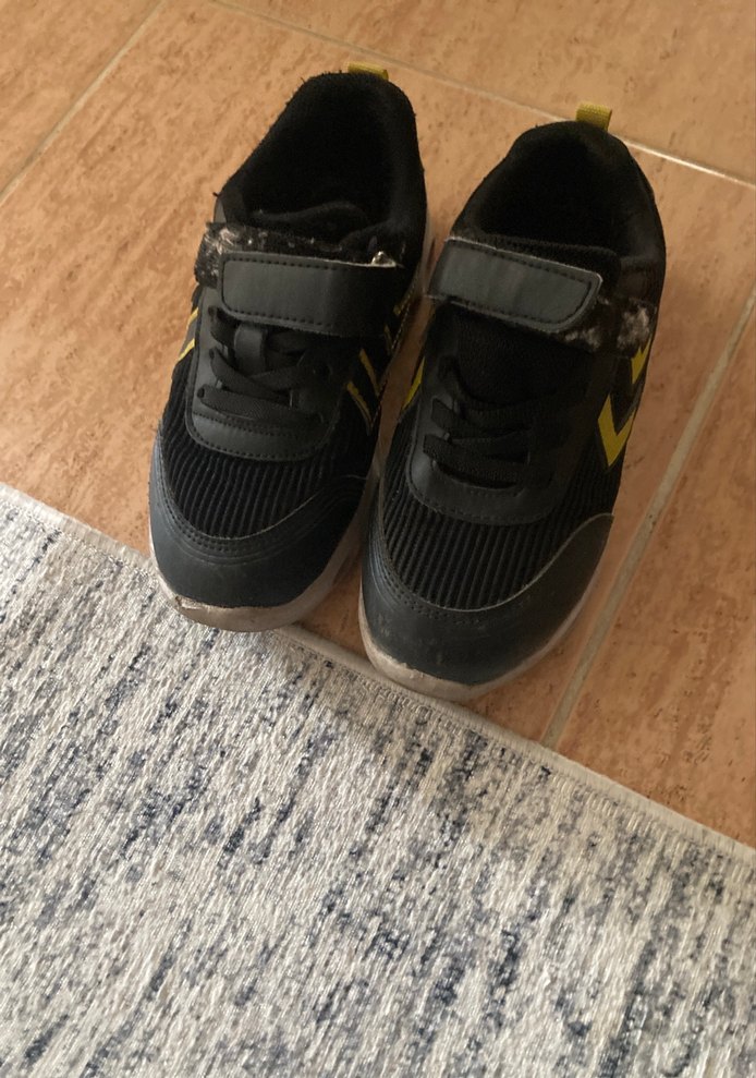 Siyah yılan desenli erkek çocuk spor ayakkabısı, kauçuk tabanlı ve kolay giyilen cırt cırtlı. Sokak stili tasarımda.