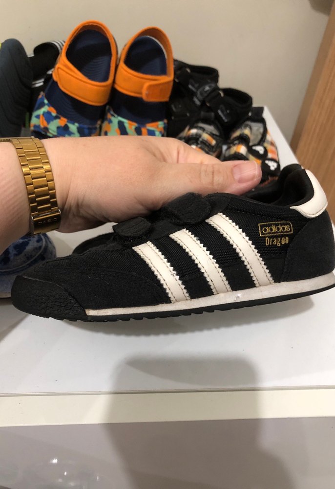 Siyah zebra desenli, cırt cırtlı ve kauçuk tabanlı erkek çocuk spor ayakkabısı. Marka detayları 'addaa Dragen' olarak okunur.
