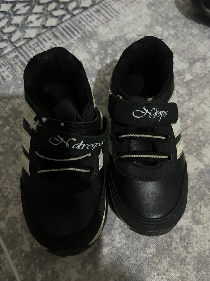 Siyah zebra desenli erkek çocuk spor ayakkabısı, kauçuk tabanlı ve kolay kapanan cırt cırtlı. Şık ve rahat. Temiz sorunsuz
