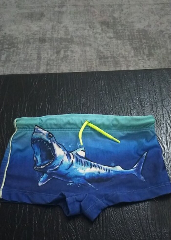 Köpek balığı desenli erkek çocuk slip mayo hiç bir yerinde kusuru yoktur ihtiyaç fazlası olduğu için satışa sundum