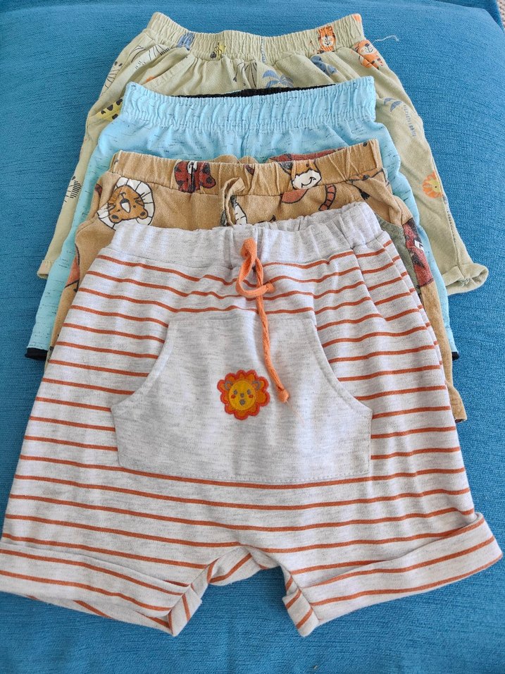 4 adet 2-3 yaş şort. Bir sorunları yok, leke sökük yırtık yok. Birinde renk biraz solmuş o kadar. Evde dısarda rahatlıkla giydirilir.