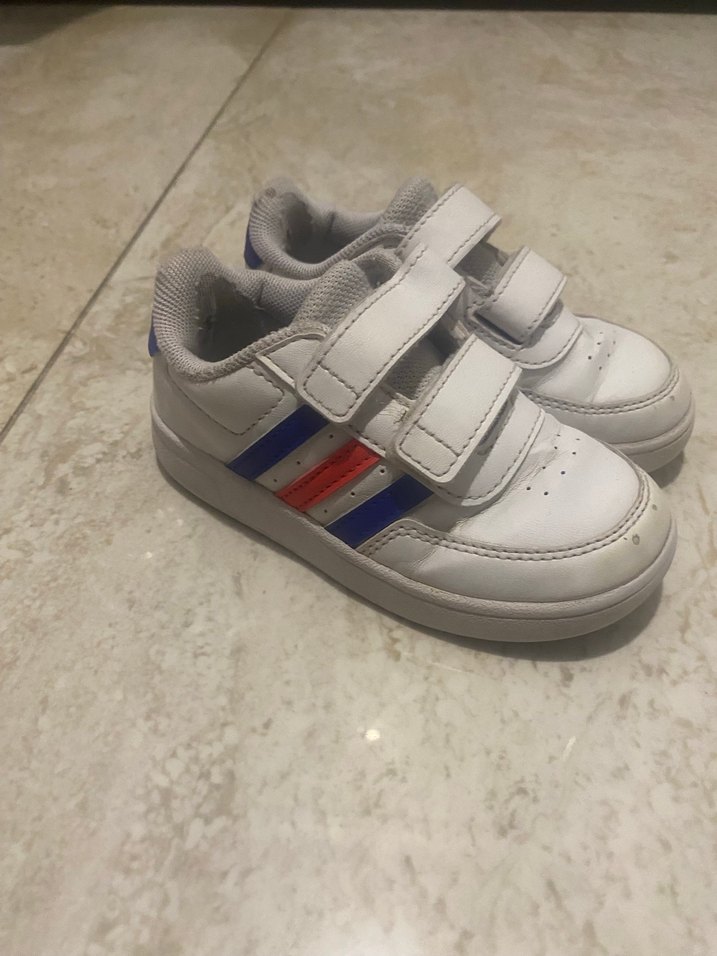 Orjinal üründür sadece iç topukta biraz aşınma var fotoğraflarda gostermeye calıstım ama yumusak agayı rahatsız etmiyo Cırt cırtlı beyaz erkek çocuk spor ayakkabısı, gri, kırmızı ve mavi çizgili detaylara sahip, kauçuk tabanlı, trend sokak stili için uygun.